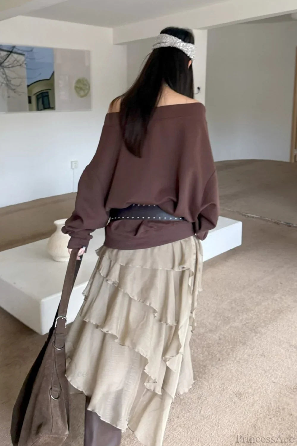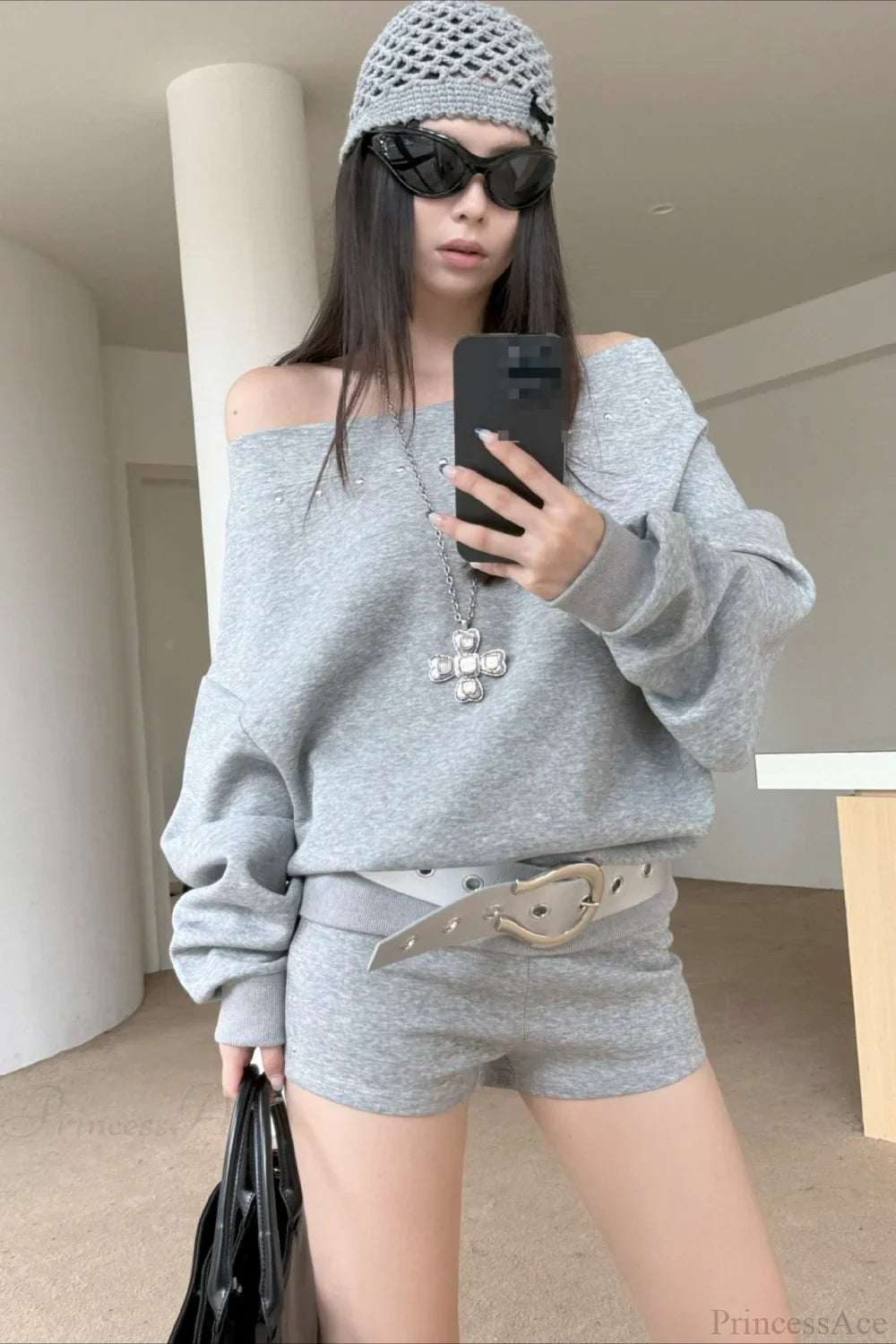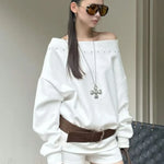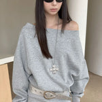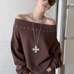 Felpa ampia con borchie e spalle scoperte asimmetriche