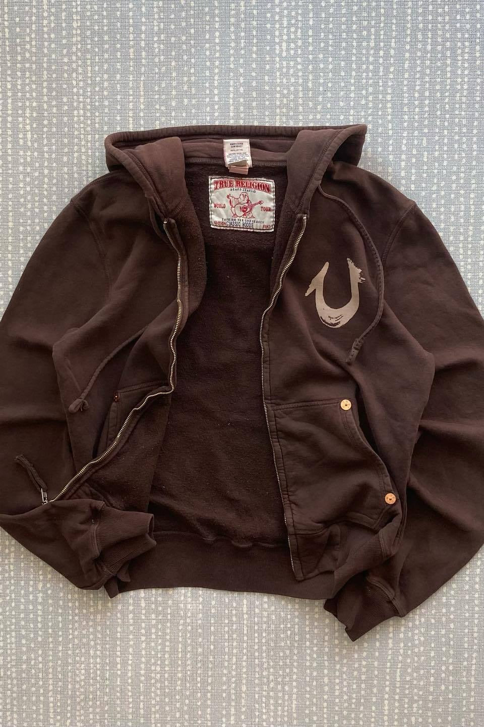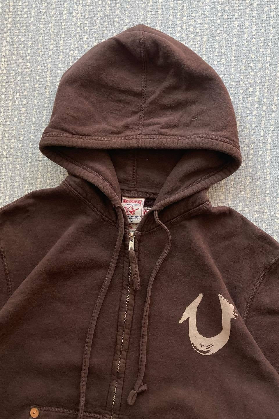 Felpa con cappuccio e cerniera rivettata con grafica vintage