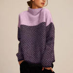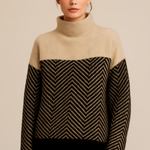 Felpa da donna a collo alto – Lana – Vestibilità rilassata – Motivo a zigzag – Lunghezza ai fianchi – Maniche lunghe