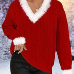 Felpa da donna - Maglia morbida - Scollo a V - Maniche lunghe - Rifiniture in pelliccia sintetica