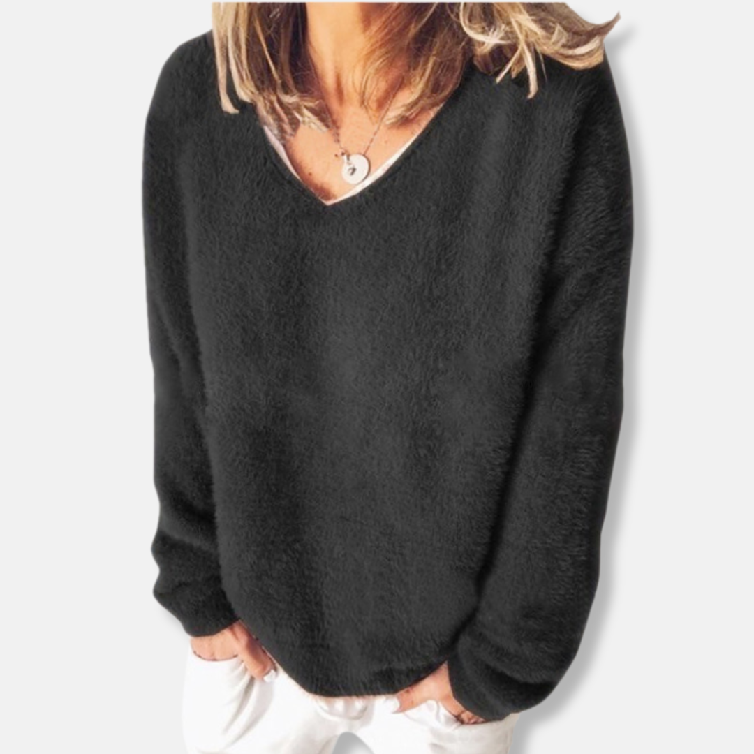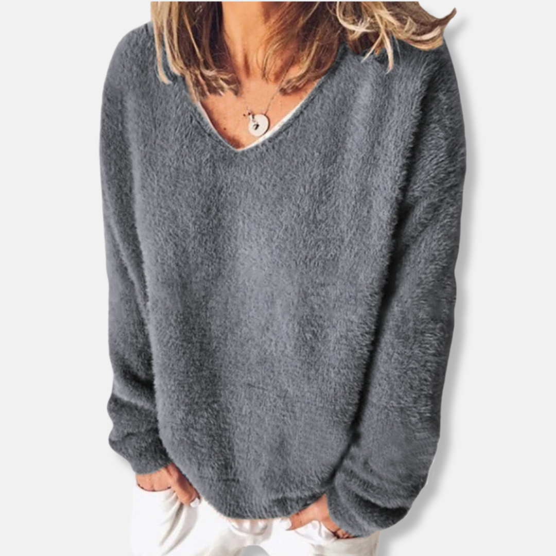 Felpa da donna - Maglia felpata - Vestibilità comoda - Scollo a V - Maniche lunghe
