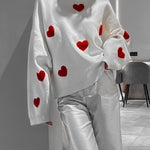 Felpa da donna – Maglia morbida – Vestibilità oversize – Fantasia a cuore – Maniche lunghe