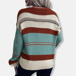 Maglione da donna - Maglia media - Vestibilità comoda - Scollo a V - Maniche lunghe a righe