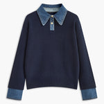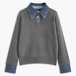 Maglione da donna – Vestibilità rilassata – Maglia morbida – Collo a camicia e polsini in denim