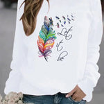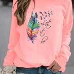Maglione da donna – Vestibilità rilassata – Cotone morbido – Fantasia piume – Maniche lunghe