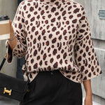 - Design: Vestibilità comoda, collo alto, stampa leopardata, maniche a 3/4