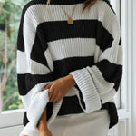 Maglione da donna – Vestibilità oversize – Maglia a coste – Scollo tondo – Maniche lunghe comode