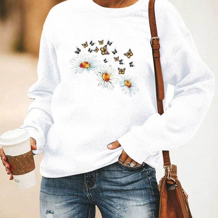 Felpa da donna – Vestibilità rilassata – Cotone morbido – Fantasia floreale e a farfalla