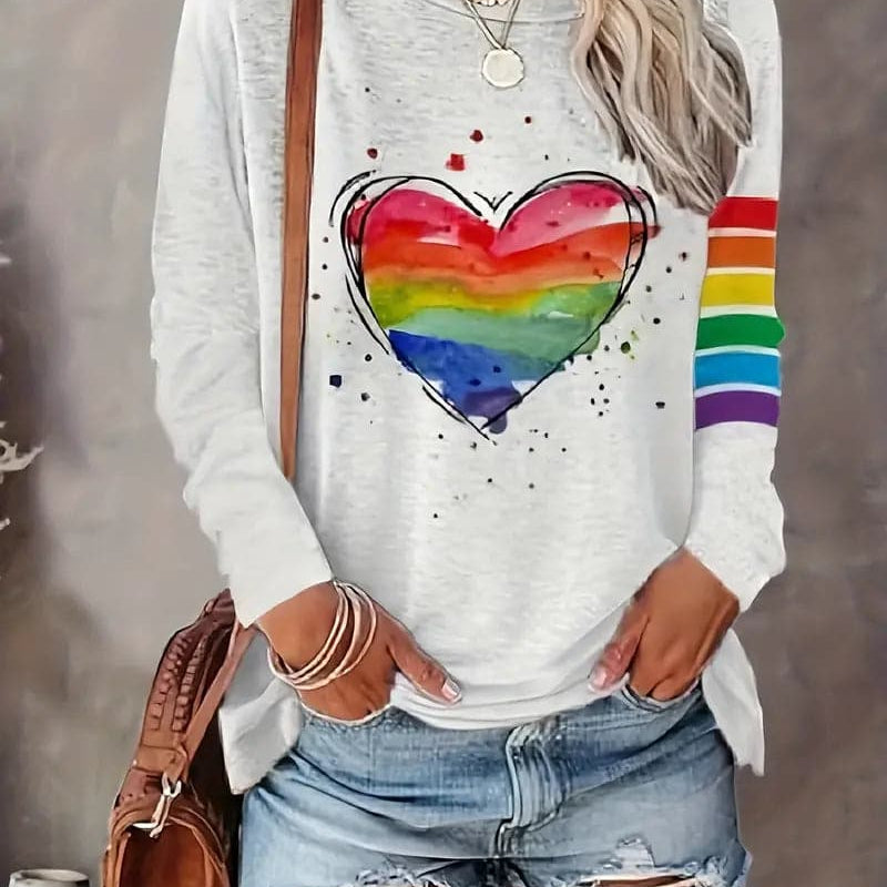 Maglia da donna a maniche lunghe – Vestibilità comoda – Scollo rotondo – Maglia morbida – Motivo a cuore