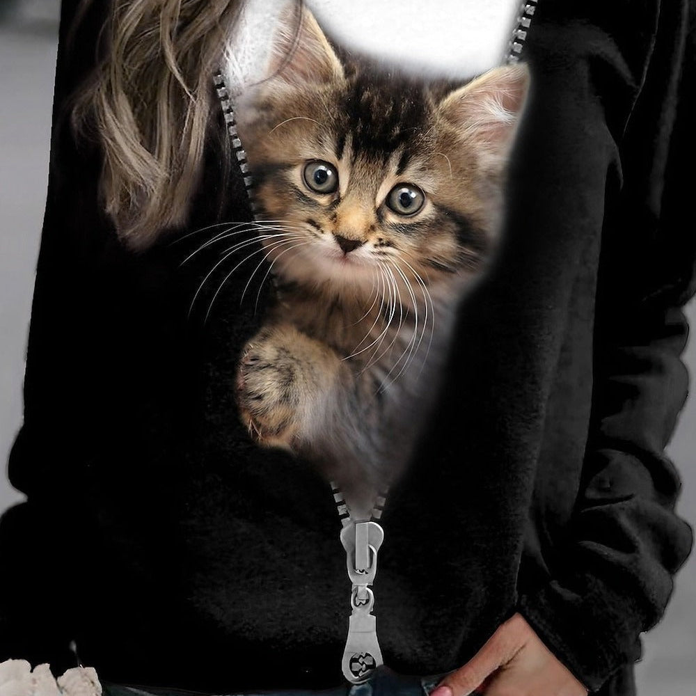 Felpa da donna – Morbido cotone – Vestibilità rilassata – Maniche lunghe – Grafica gatto