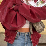 Giacca vintage in pelle con risvolto e maniche lunghe