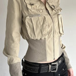 Giacca vintage utility a maniche lunghe a coste