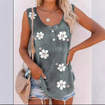 Canotta da donna – Stampa floreale – Vestibilità ampia – Scollo rotondo con bottoni – Tessuto leggero