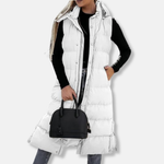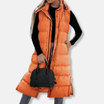 Giacca lunga da donna – Trapuntata leggera – Vestibilità comoda – Senza maniche con cappuccio