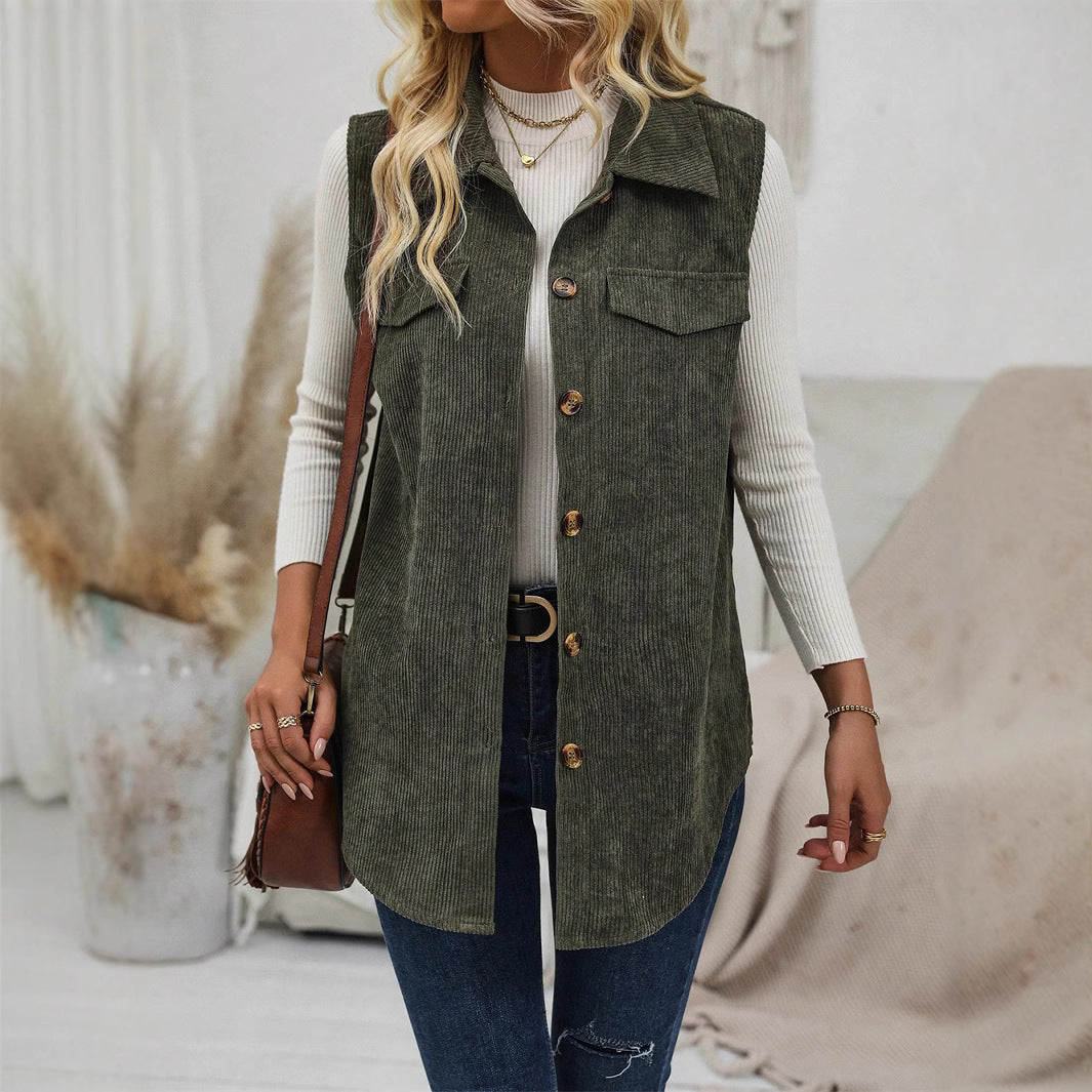 Gilet da donna – Vestibilità comoda – Tessuto morbido a coste – Bottoni e tasche sul petto