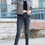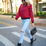 Giubbotto bomber da donna – Vestibilità rilassata – Rifiniture a coste – Chiusura con zip