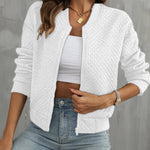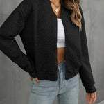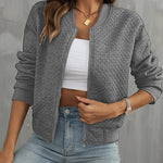 Giubbotto bomber da donna – Taglio corto – Trapuntato – Chiusura con zip – Rifiniture a costine