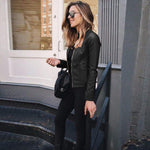Migliora il tuo stile con la nostra giacca in pelle Chic Urbanite! Pensata per chi vive in città, questa giacca bilancia raffinatezza e audacia, il tutto avvolto in una splendida tonalità di verde bosco. Che tu stia passeggiando per i viali del centro o dirigendoti verso un bar chic, questo capo è il tuo compagno di stile ideale, promettendo di attirare l'attenzione con la sua silhouette elegante e i colori audaci. Caratteristiche: Elegante chiusura frontale con zip con dettagli argentati per un tocco di eleganza in più. Colletto dal design classico che fonde perfettamente un fascino senza tempo con la moda contemporanea. Maniche lunghe con polsini con zip, che consentono una vestibilità personalizzabile e un tocco di stile in più. Vestibilità versatile che valorizza la figura, perfetta da indossare sopra i tuoi outfit preferiti. Tasche laterali spaziose, pratiche ed eleganti per portare con te i tuoi oggetti essenziali. Completata da un'elegante e facile borsa nera che incarna lo stile urban chic. Abbina questa splendida giacca in pelle a outfit casual eleganti o a una semplice t-shirt e jeans per fare un'impressione indimenticabile ovunque tu vada. Diventa l'incarnazione dello street style disinvolto: aggiungi oggi stesso questo capo indispensabile al tuo guardaroba!