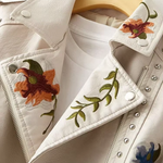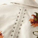 Giacca in pelle da donna – Taglio aderente – Ricamo floreale – Stile biker con borchie