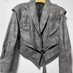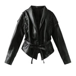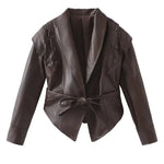 Giacca in pelle da donna – Taglio aderente – Collo a scialle – Cintura in vita – Spalle con lacci