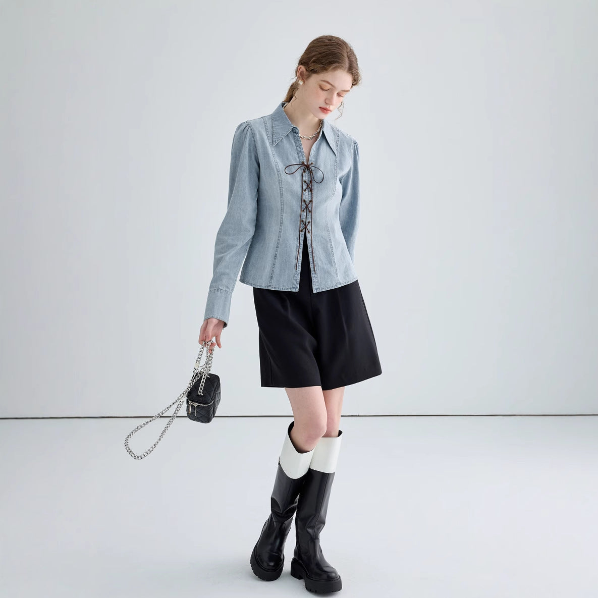 Giacca-camicia da donna – Taglio aderente – Allacciatura frontale – Maniche lunghe strutturate