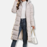 Cappotto lungo da donna – Caldo piumino – Cappuccio – Taglio dritto – Trapuntato comfort