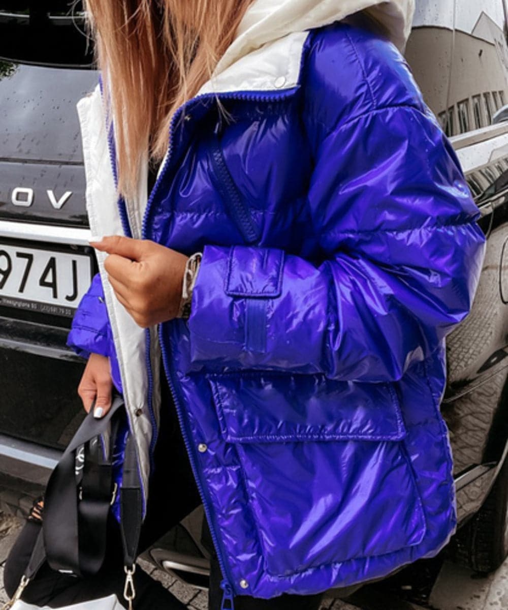 Mettiti al centro dell'attenzione con il nostro piumino Radiant Blue, l'aggiunta all'avanguardia al tuo guardaroba invernale che non scende a compromessi tra calore e stile. Elegante, luminosa e audace, questa giacca presenta una lucentezza blu metallizzata che attirerà l'attenzione ovunque tu vada. Foderata con un accogliente interno bianco crema, la giacca non è solo un capo d'abbigliamento di tendenza, ma anche un rifugio di comfort contro il freddo. Progettata per offrire comfort senza ingombro, la nostra giacca imbottita offre ampie tasche per i tuoi oggetti essenziali di tutti i giorni. I cordini regolabili e i polsini elasticizzati assicurano una vestibilità aderente che tiene fuori il freddo e trattiene il calore. Completata da un cappuccio di grandi dimensioni, la protezione dalle intemperie è garantita. Abbinala ai tuoi jeans preferiti per una giornata informale o indossala sopra un abito per un look da sera. Il design versatile si adatta senza sforzo alle strade cittadine e ai rifugi di campagna. Questa giacca imbottita è più di un semplice capospalla: è un'espressione di sicurezza e di eleganza moderna. Non lasciarti abbattere dalla malinconia invernale: ravviva il tuo guardaroba invernale con il fascino vivace del nostro piumino Radiant Blue.
