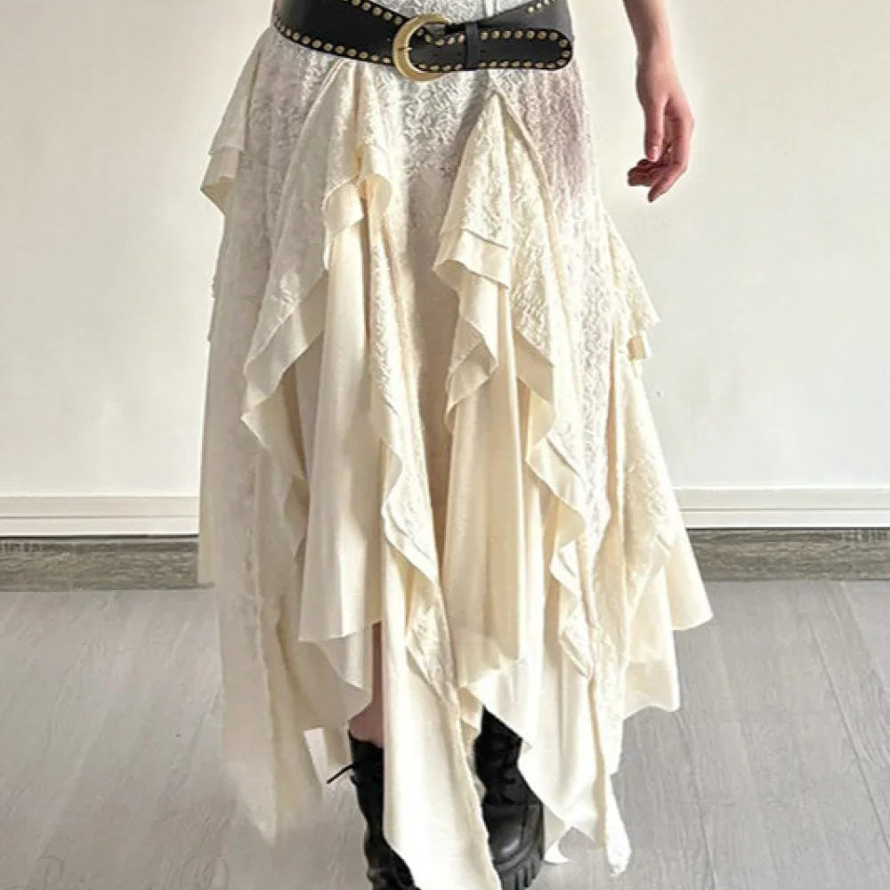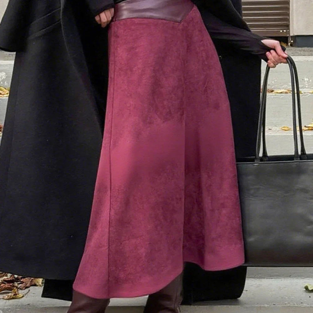 Gonna asimmetrica in similpelle con volant e linea ad A