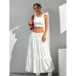 Gonna lunga da donna – Taglio svasato – Morbido cotone – Coulisse regolabile in vita – Volant