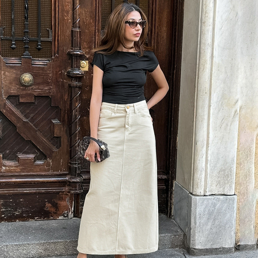 Gonna midi da donna – 100% cotone – Vestibilità slim – Vita alta – Elegante spacco frontale