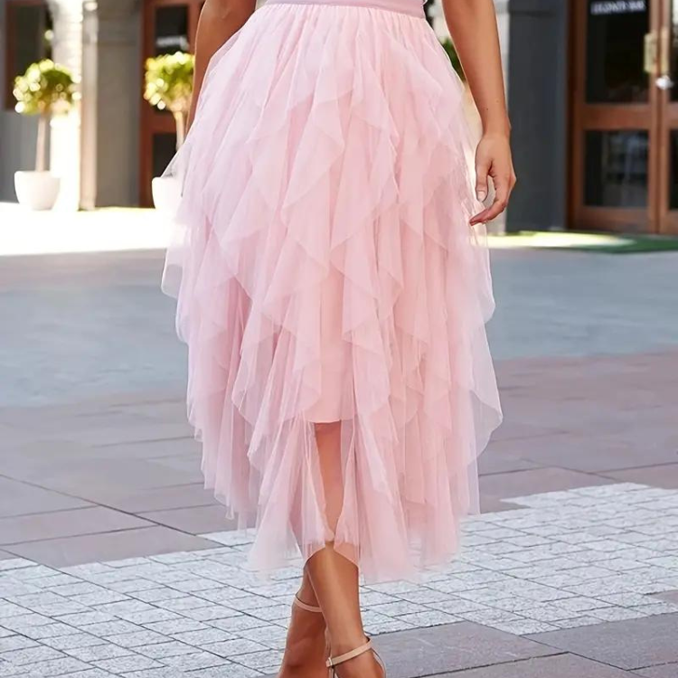 Gonna midi da donna – Tulle leggero – Vita arricciata – Taglio fluido con volant a strati