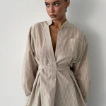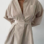 Camicetta a righe con scollo a V e vita irregolare annodata a maniche lunghe