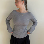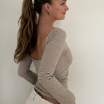 Blusa in maglia aderente a righe con scollo rotondo e schiena scoperta