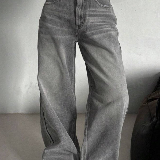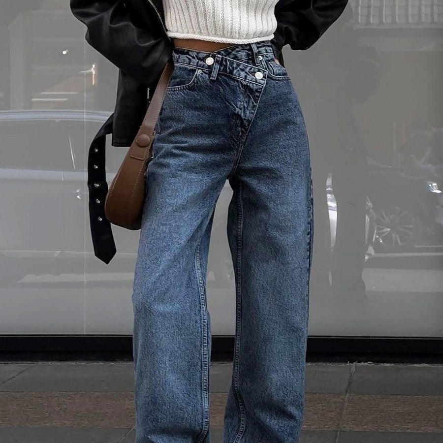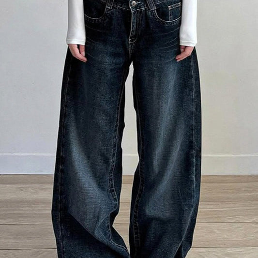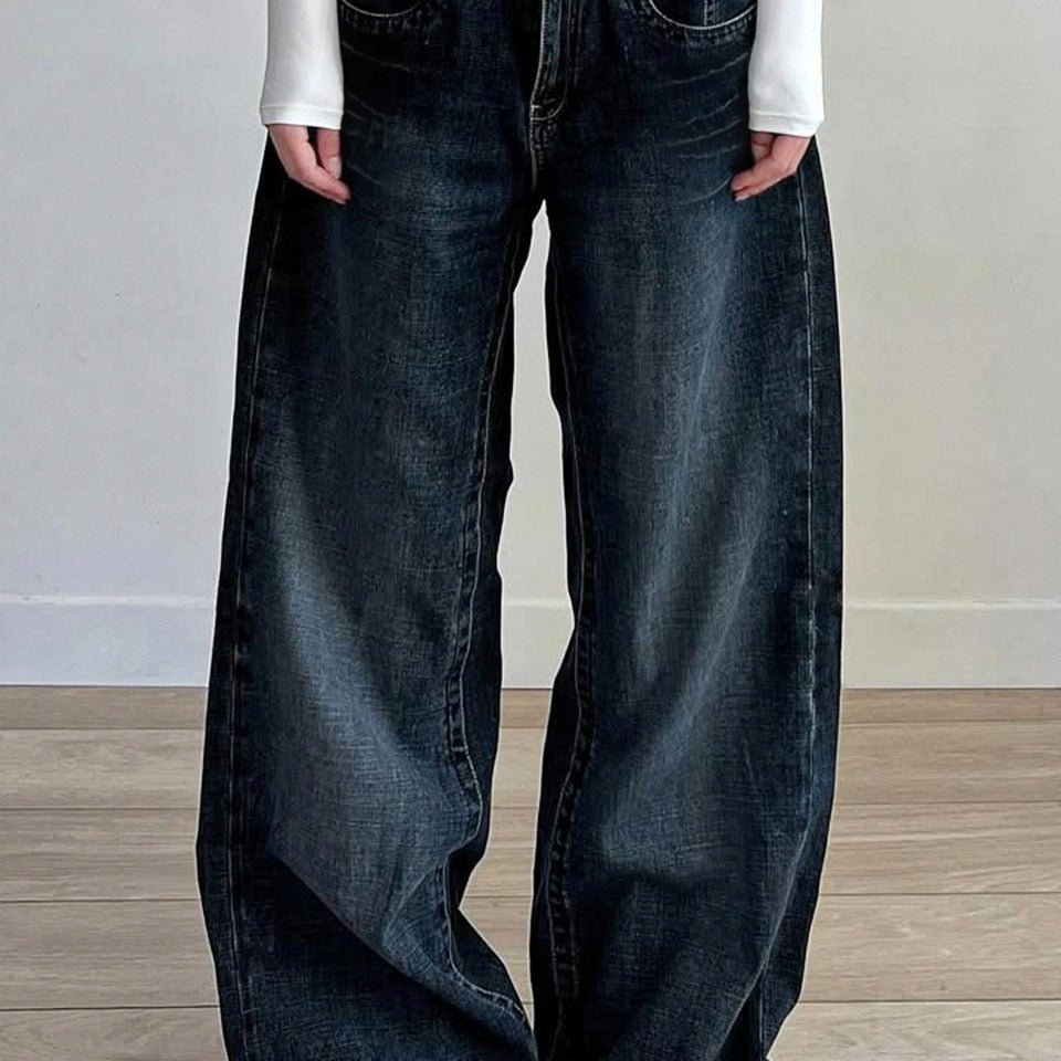 Jeans larghi e arricciati con vita media ed elastico in vita
