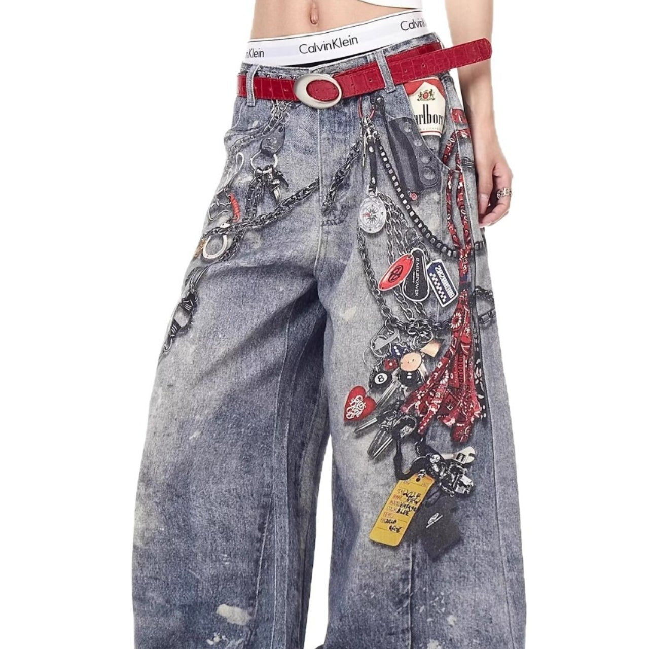 Jeans larghi e larghi con stampa a catena 3D High Street