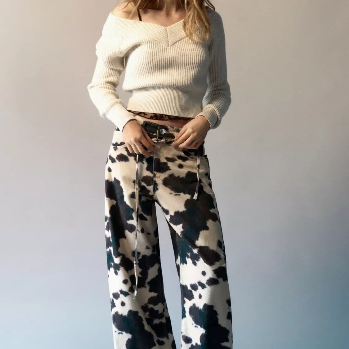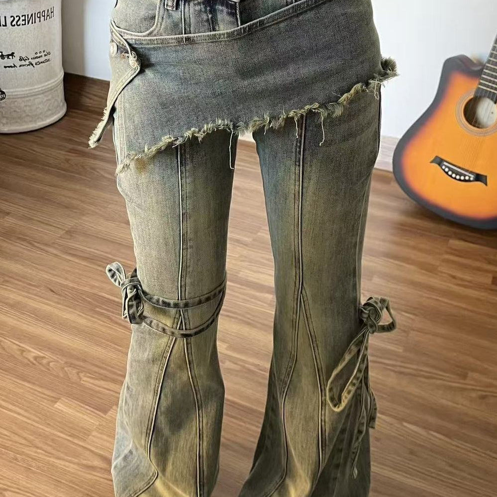 Jeans larghi bianchi Y2K in due pezzi con papillon