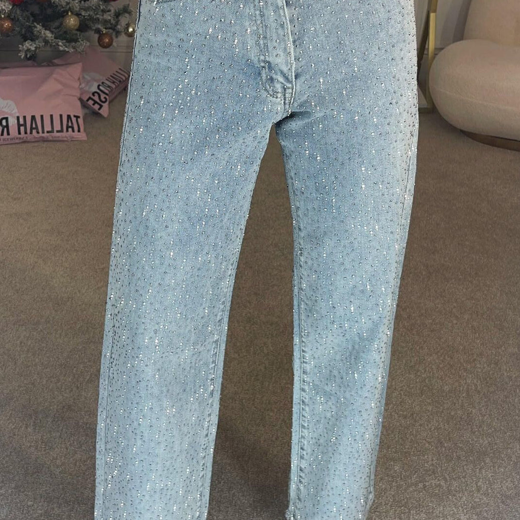 Jeans a gamba larga con strass vintage