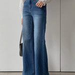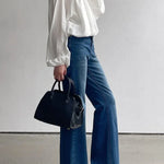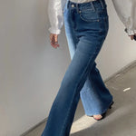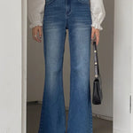 Jeans bootcut a vita alta tinta unita