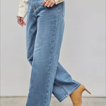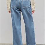 Jeans dritti e rilassati con bottoni asimmetrici