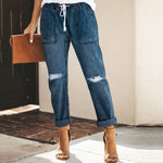 Jeans da donna - Vita alta - Cintura annodabile - Vestibilità comoda - Stile casual