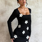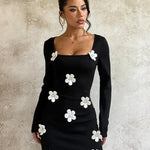 Mini abito aderente a maniche lunghe con vita sottile e sexy a fiori