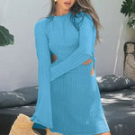 Mini abito aderente con vita tagliata e maniche lunghe