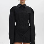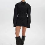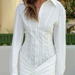 Mini abito aderente bianco a maniche lunghe con cintura in vita