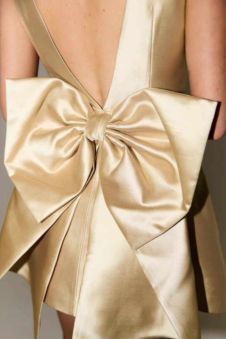 Elegante miniabito a vita alta con scollo quadrato e schiena scoperta