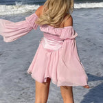 Mini abito in chiffon con cintura asimmetrica e ampia