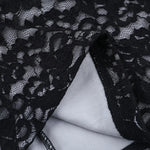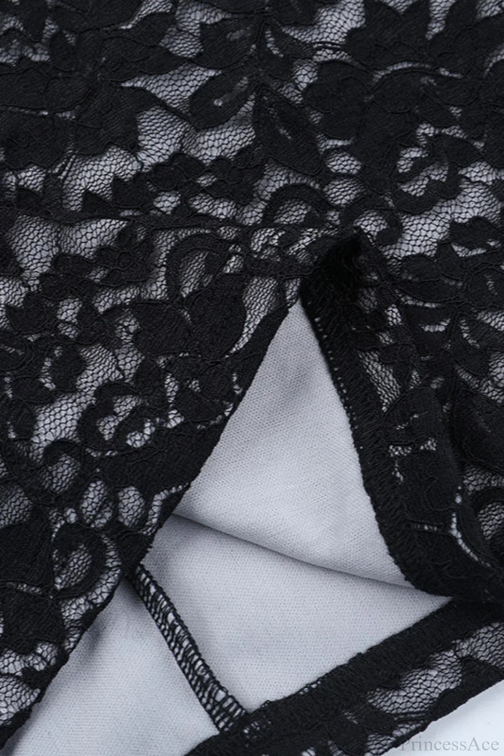 Mini abito sexy in pizzo trasparente con spalle scoperte e maniche lunghe