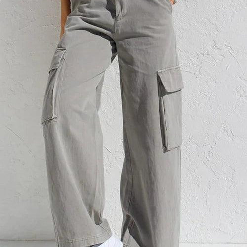 Pantaloni cargo da donna - Vita alta - Vestibilità ampia - Tasche laterali funzionali