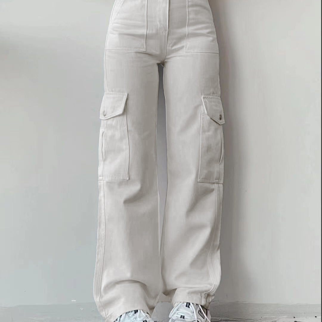Pantaloni da donna - Cotone - Vita alta - Vestibilità comoda - Gamba dritta - Tasche cargo