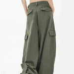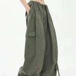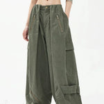 Pantaloni cargo larghi a vita alta stile paracadute verde militare