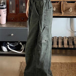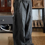 Pantaloni cargo larghi in denim lavato e rovinato